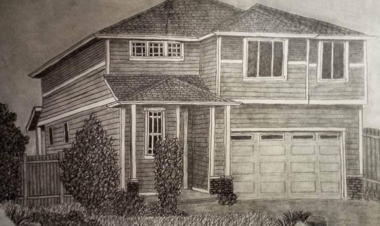This piece reflects my fascination with Pacific Northwest history, blending old architecture with natural elements in graphite.